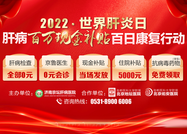 为贯彻中共中央、国务院颁布的《健康中国2030规划纲要》,落实刚刚下发的《济南市促进消费持续恢复发展的若干措施》,积极响应2022年世界肝炎日的号召,济南京坛肝病医院在首都医科大学附属北京地坛医院、北京佑安医院的全力支持下,在全国启动“世界肝炎日·百日康复行动”暨百万现金补贴助力复工复产公益活动,开展肝病科普宣教、免费体检、专项补贴、专家会诊等肝病公益活动,邀请北京等地专家为疑难肝病患者会诊,期间对肝病患者发放百万补贴现金,用于检查和治疗援助,目的是让肝病患者看得上病、看得起病、看的好病,提高人民群众的健康获得感。
